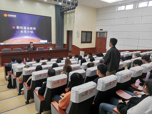 市金投集團(tuán)業(yè)務(wù)骨干代表結(jié)合自身工作經(jīng)歷,詳盡介紹了集團(tuán)的基金業(yè)務(wù)、資管與轉(zhuǎn)貸業(yè)務(wù)、融資租賃業(yè)務(wù)。在場的學(xué)生通過學(xué)習(xí)金融概念知識,了解金融項目過程,真實感受金融市場,對金融行業(yè)的了解更深一層,為成長為合格的金融人打下了堅實的基礎(chǔ)。