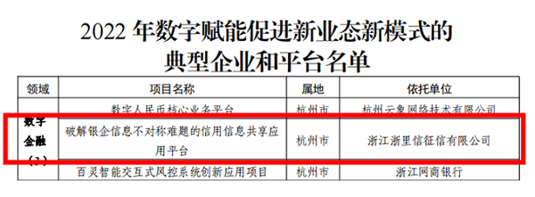 近日,浙江省發(fā)展改革委公布了2022年數(shù)字賦能促進(jìn)新業(yè)態(tài)新模式的典型企業(yè)和平臺(tái)名單,市金投集團(tuán)參股公司天道金科下屬企業(yè)以“破解銀企信息不對(duì)稱(chēng)難題的信用信息共享應(yīng)用平臺(tái)”成功入選。