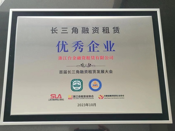 10月25-26日,首屆長(zhǎng)三角融資租賃發(fā)展大會(huì)在南京市舉辦,本次活動(dòng)由江蘇省地方金融監(jiān)督管理局指導(dǎo),江蘇省融資租賃行業(yè)協(xié)會(huì)、南京師范大學(xué)主辦,上海市融資租賃行業(yè)協(xié)會(huì)、浙江省租賃業(yè)協(xié)會(huì)、安徽省融資租賃企業(yè)協(xié)會(huì)聯(lián)合主辦,長(zhǎng)三角新金融研究院承辦。經(jīng)長(zhǎng)三角專家團(tuán)隊(duì)評(píng)選,市金投集團(tuán)下屬浙江臺(tái)金融資租賃有限公司榮獲“長(zhǎng)三角融資租賃優(yōu)秀企業(yè)”稱號(hào)。