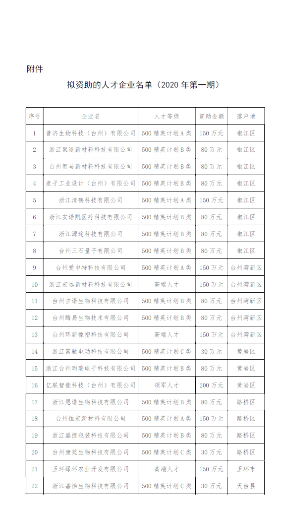 附件:擬資助的人才企業(yè)名單(2020年第一期)