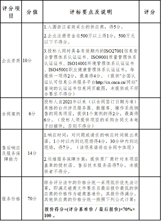 綜合比選。評(píng)分標(biāo)準(zhǔn)見下表: