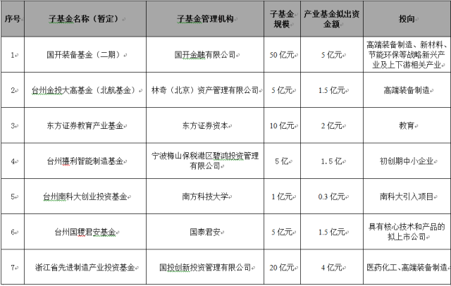 浙江臺州轉(zhuǎn)型升級產(chǎn)業(yè)基金擬設(shè)立子基金名單