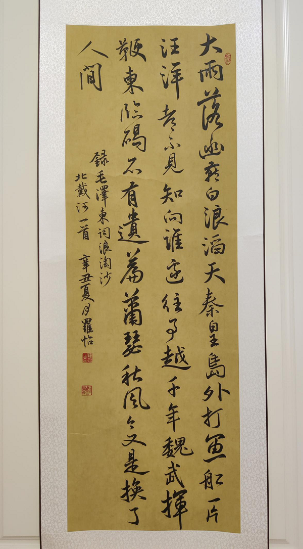 “大雨落幽燕,白浪滔天,秦皇島外打魚(yú)船。一片汪洋都不見(jiàn),知向誰(shuí)邊?往事越千年,魏武揮鞭,東臨碣石有遺篇。蕭瑟秋風(fēng)今又是,換了人間?!睓C(jī)關(guān)黨支部黨員代表、臺(tái)州市書(shū)法家協(xié)會(huì)會(huì)員羅怡同志通過(guò)書(shū)法的藝術(shù)表現(xiàn)形式,以真摯的情感、精湛的技藝,傳遞對(duì)黨心聲,緬懷激情歲月,展望美好未來(lái)。